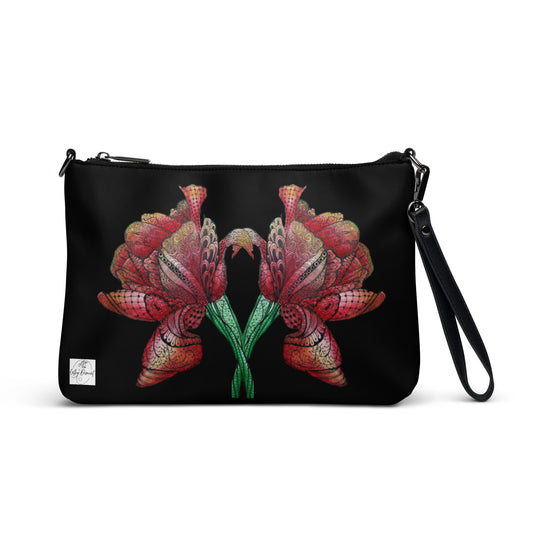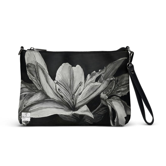 Crossbody Bag -Floral Elegance, Monochrome Lily Artwork by Cathy Dement, Faux Leather, Interchangeable Wrist Strap