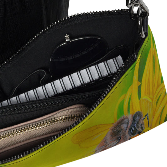 Crossbody Bag - What's For Dinner, Honey? - Colorful Yellow Flower With Bee Artwork Purse