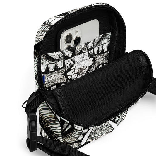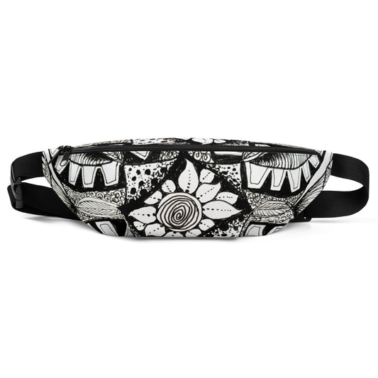Fanny Pack: Zen-dala, Monochrome Floral Artwork Design, Belt Bag by Cathy Dement
