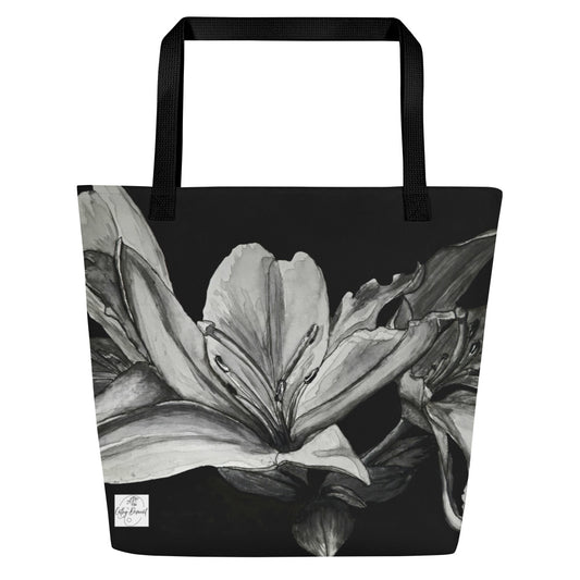 Large Tote Bag with Pocket: Floral Elegance - Lily Artwork Design by Cathy Dement, 16x20 Inches