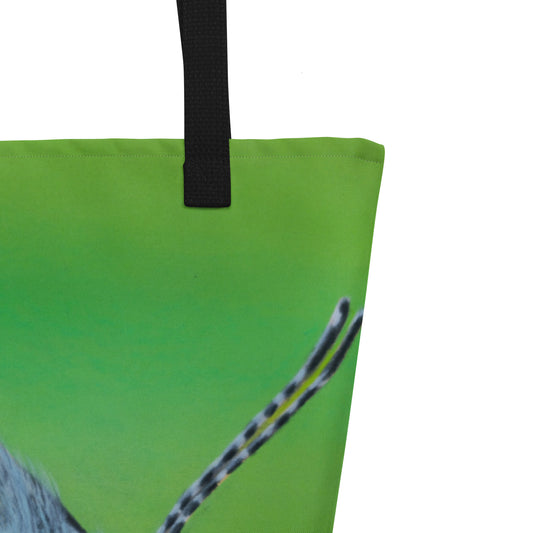 Large Tote Bag with Pocket: The Tulip Thief Whimsical Donkey in Floppy Hat Artwork Design by Cathy Dement, 16x20 Inches