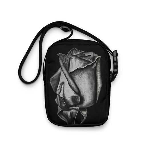 Crossbody Bag - Dusk's Embrace - Monochrome Rose Artwork Purse