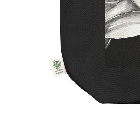 Large Tote Bag With Pocket - Midnight Magnolias - Monochrome Floral Artwork Design