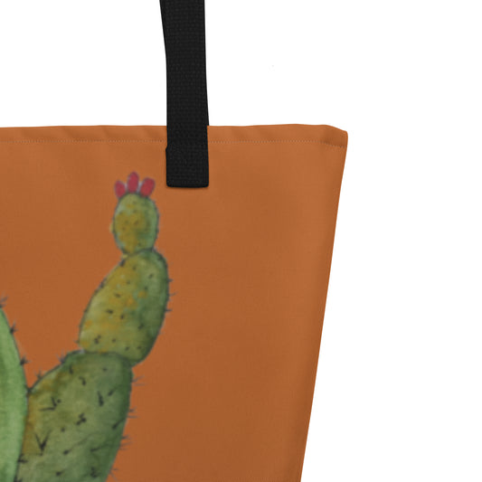 Large Tote Bag with Pocket: Adobe Oasis Succulent Plant Artwork Design by Cathy Dement, 16x20 Inches