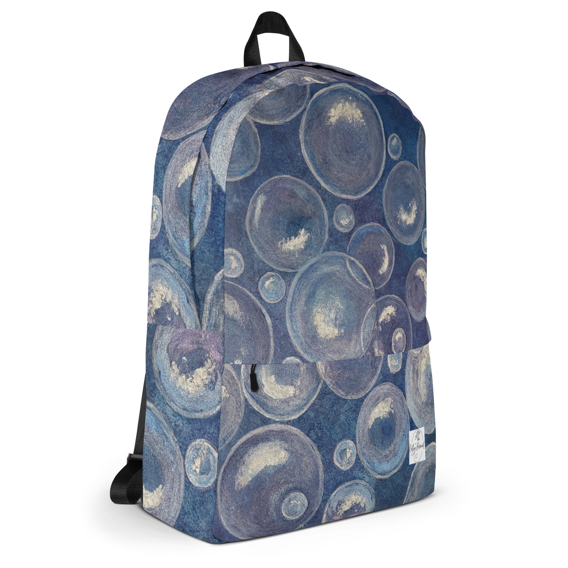 This bag features my original watercolor and gouache painting of luminous bubbles. It is a medium size backpack is just what you need for daily use or sports activities! The pockets (including one for your laptop) give plenty of room for all your necessities, while the water-resistant material will protect them from the weather.