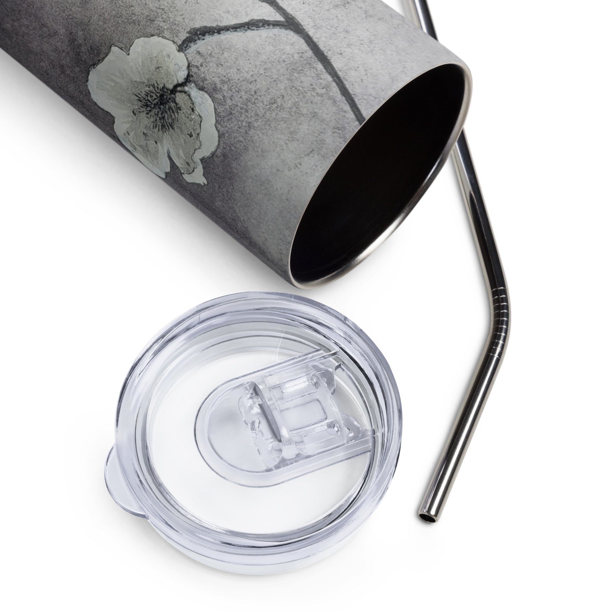 Enjoy hot or cold drinks on the go with this stylish stainless-steel tumbler that features my original watercolor and ink painting of a lovely dogwood flower bloom! This reusable tumbler with a metal straw is a perfect combo for hot or cold drinks at any time of the day.