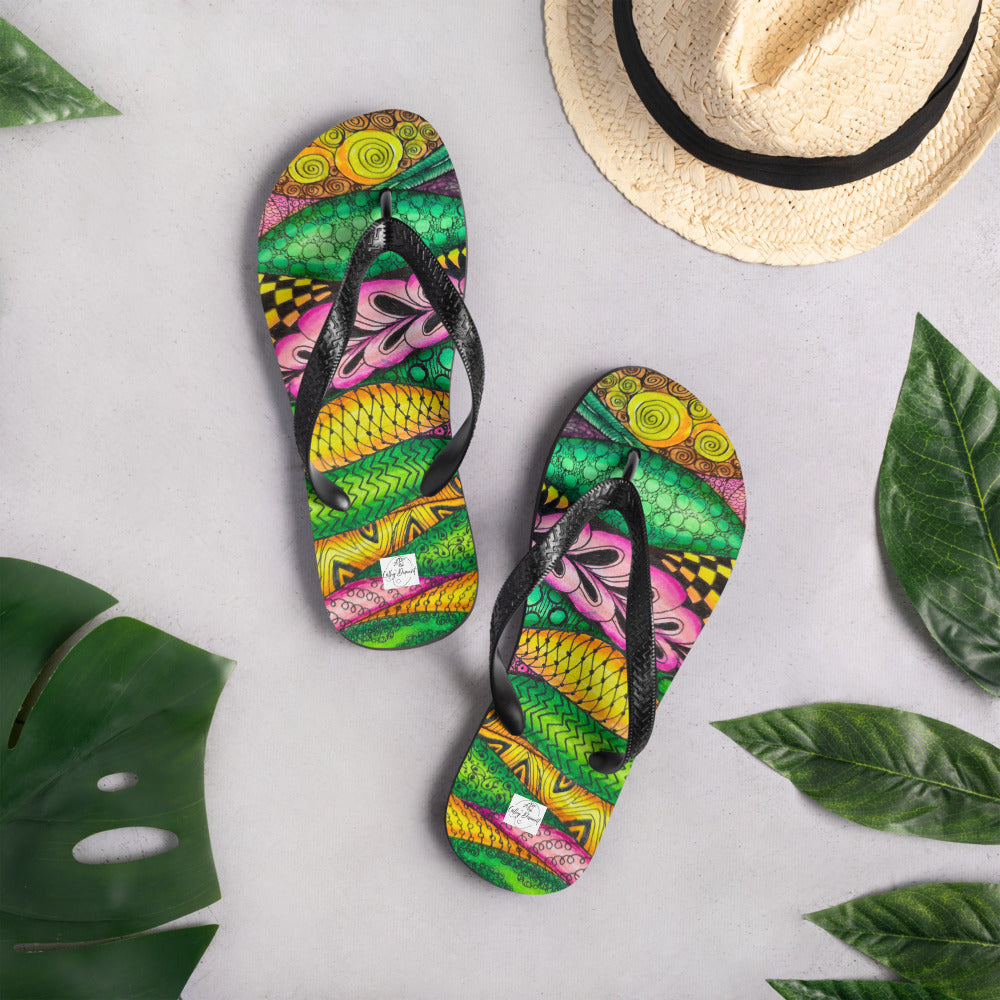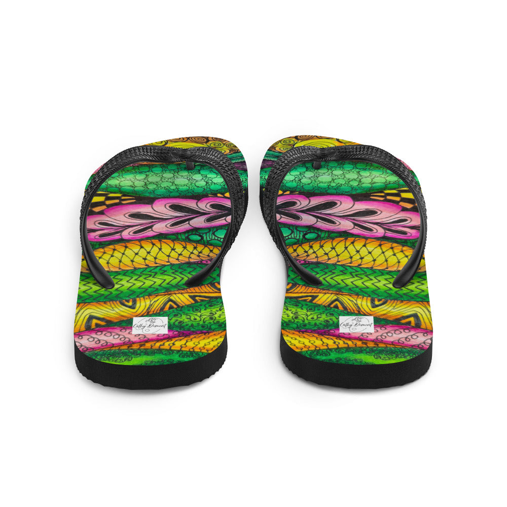 Flip-Flops - Zen Bloom - Colorful Zentangle Abstract Artwork Design, Wearable Art Shoes
