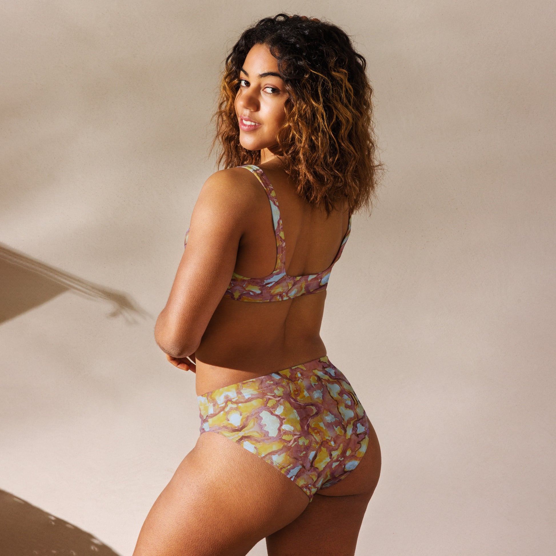 High-waisted Bikini - Sunset Veil - Colorful Abstract Artwork Design