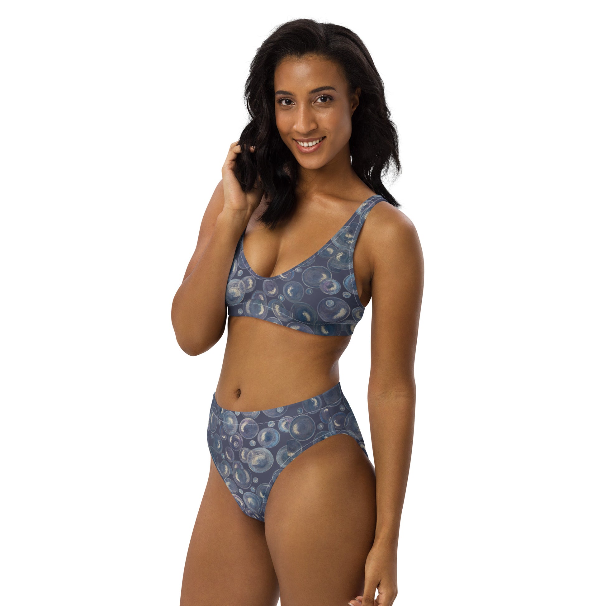 High-waisted Bikini - Tranquil Reflections - Colorful Abstract Bubble Artwork Design