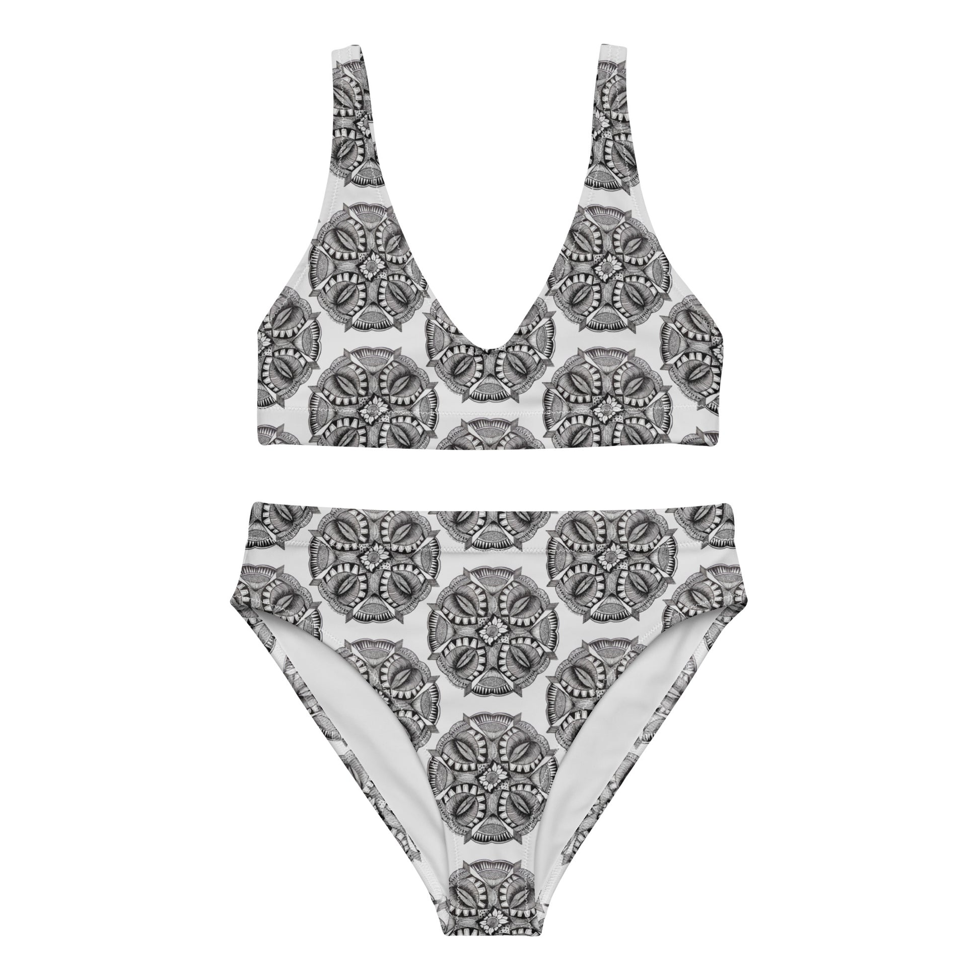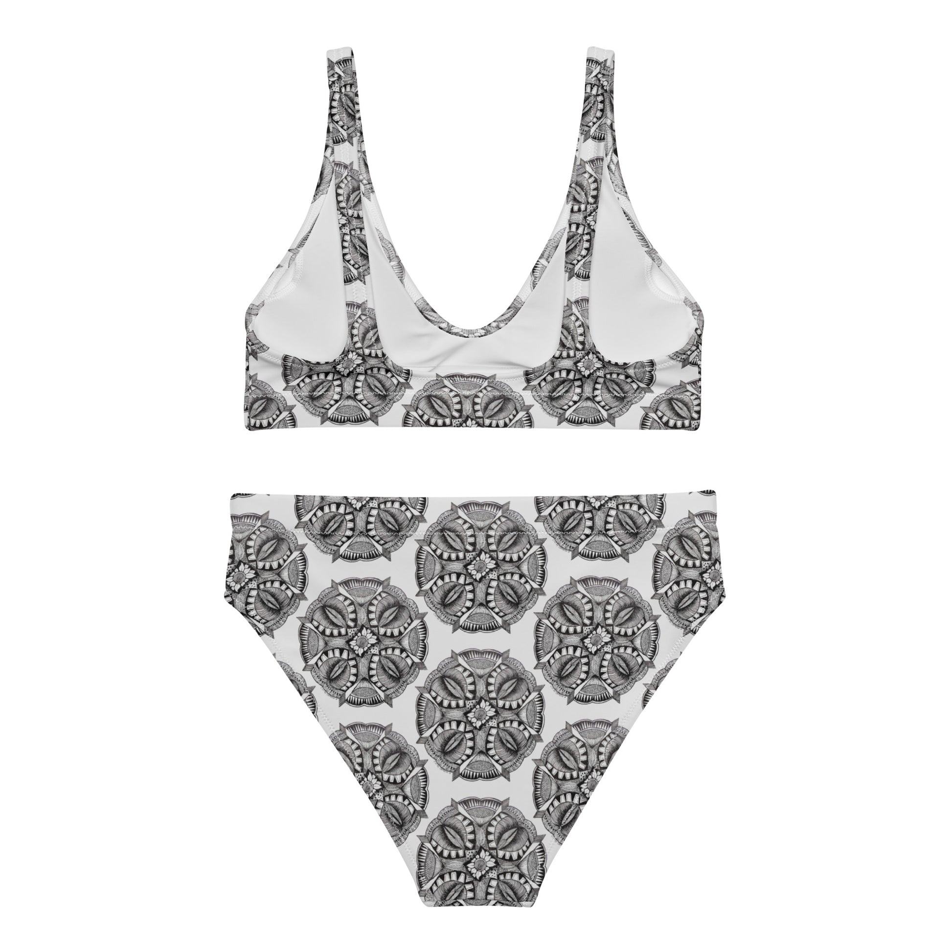 High-Waisted Bikini - Zen-Dala - Monochrome Mandala Abstract Artwork Design