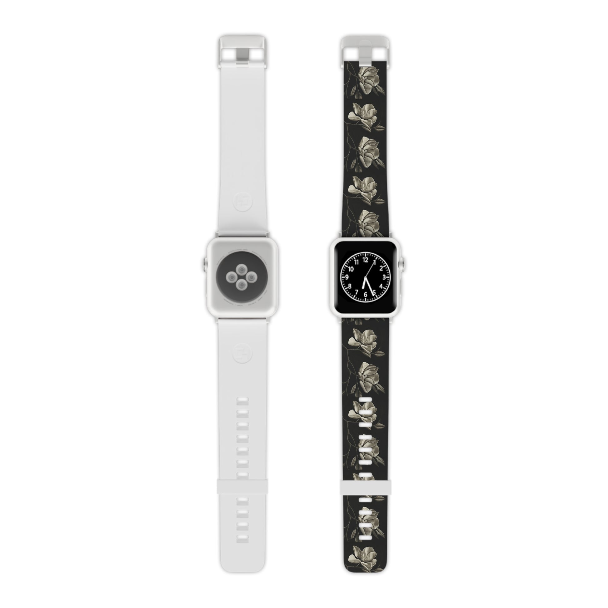 Watch Band for Apple Watch - Midnight Magnolias - Monochrome Floral Artwork Design