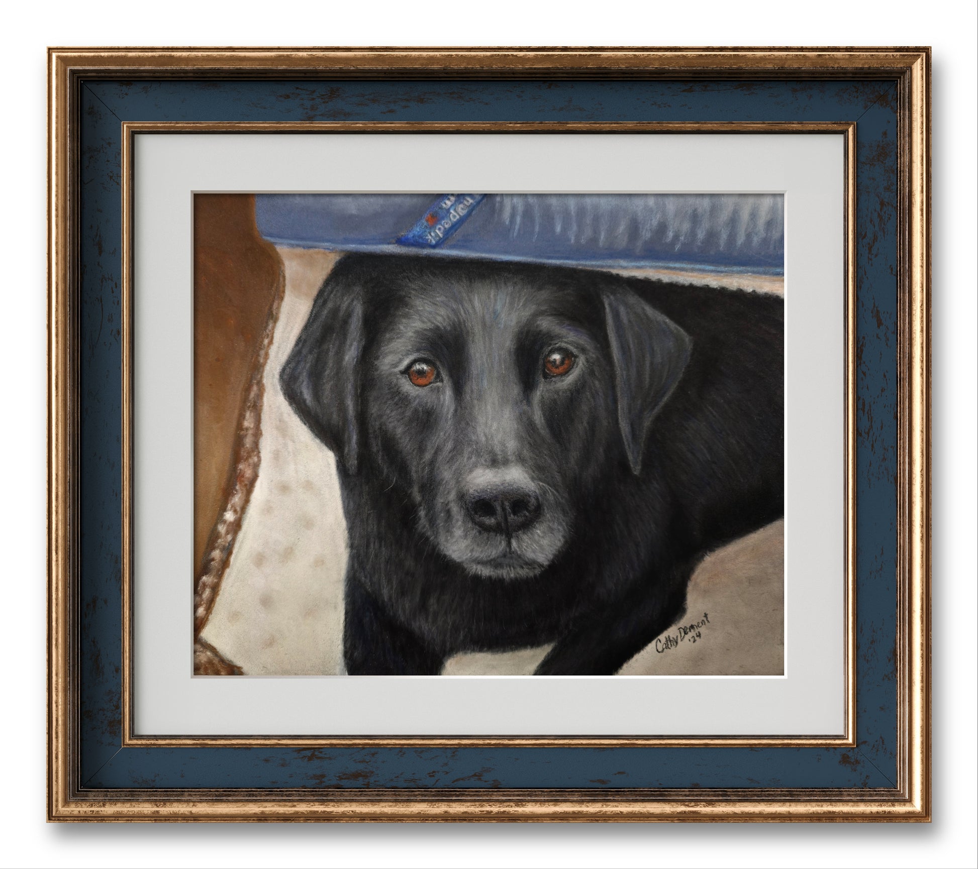 This pet portrait is a black lab mix named "D". Since it was a commissioned piece, it has found it's "fur-ever" home. The original is 9.5x12" and was done with soft pastels. A pet portrait is a unique way to cherish your beloved furry friend. A commissioned artwork will bring joy and love to your home for years to come. The original piece, created with soft pastels, measures at 9.5x12". Fill out the request a commission box now to request your own!!!