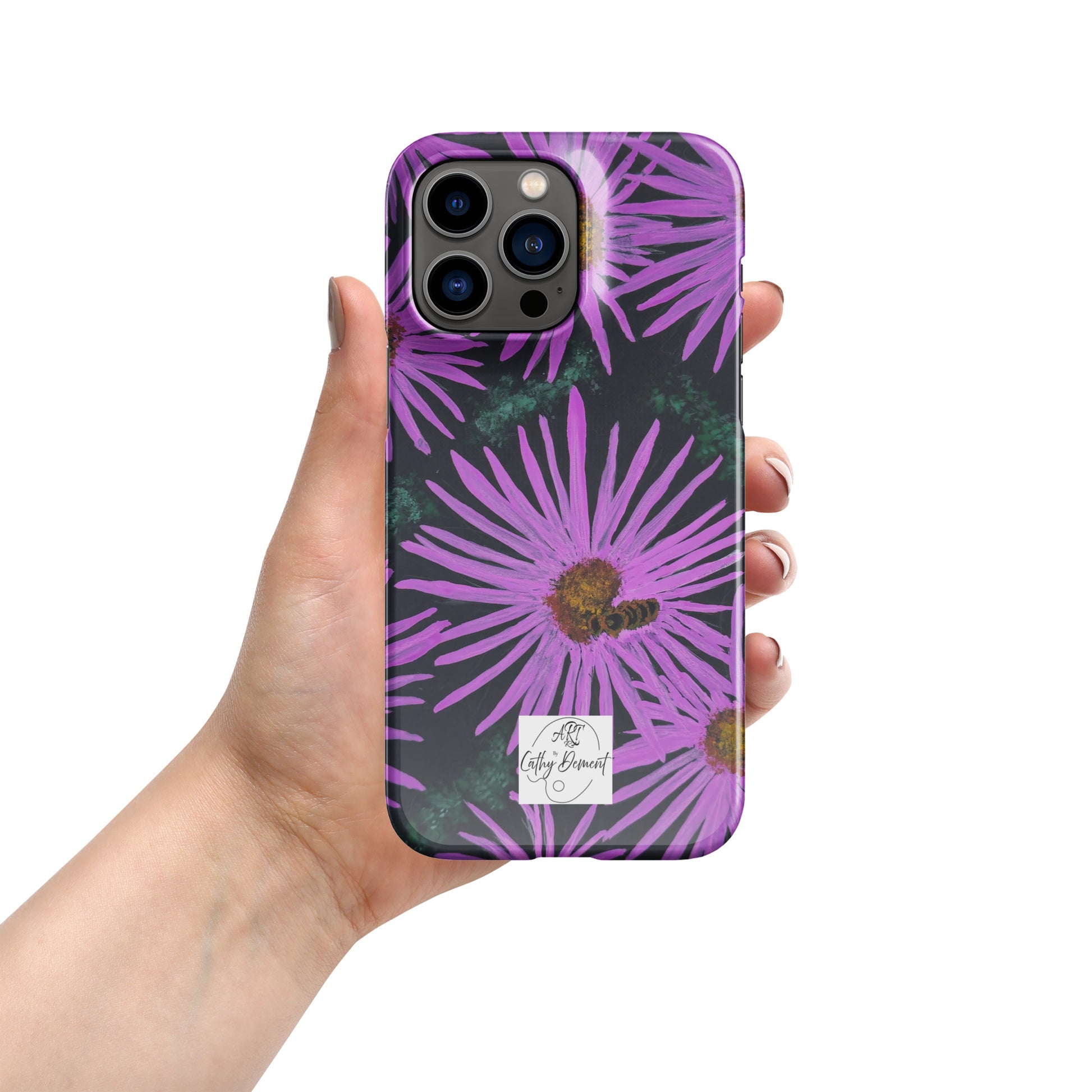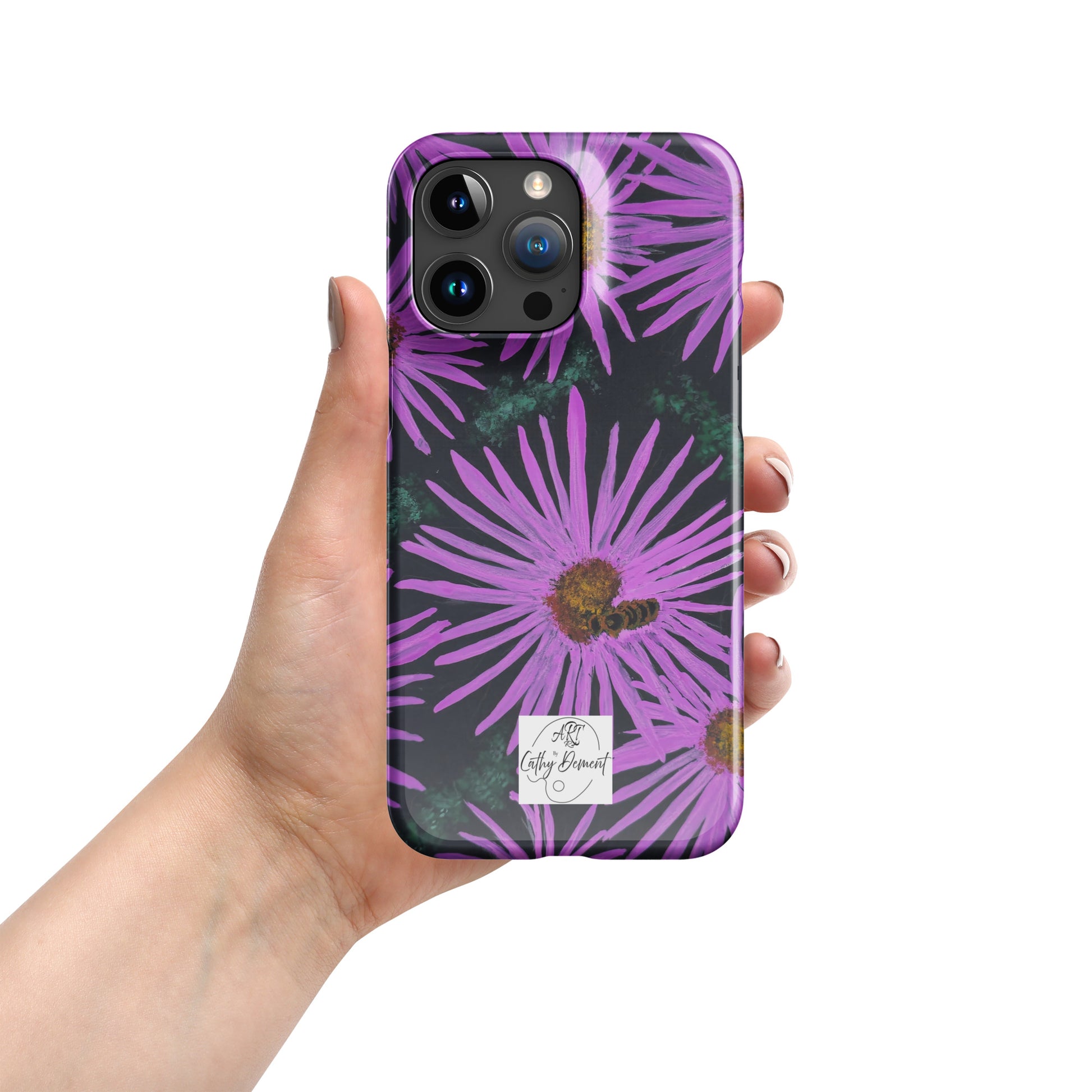 Snap Phone Case for iPhone® - Purple Aster Flowers With Bee - Colorful Floral Artwork Design