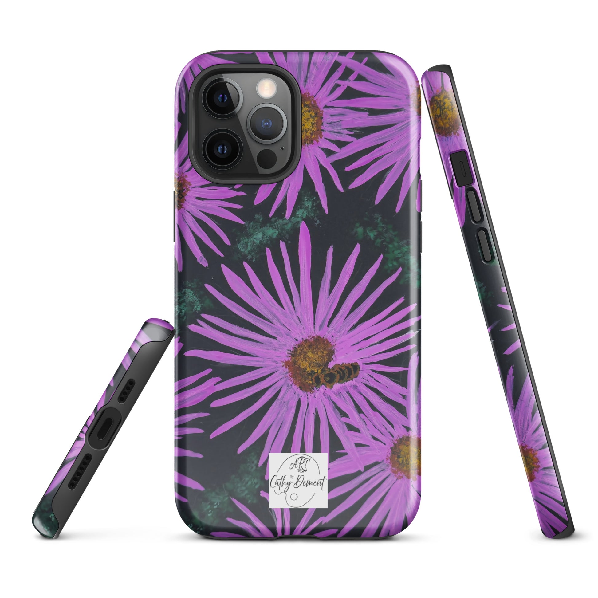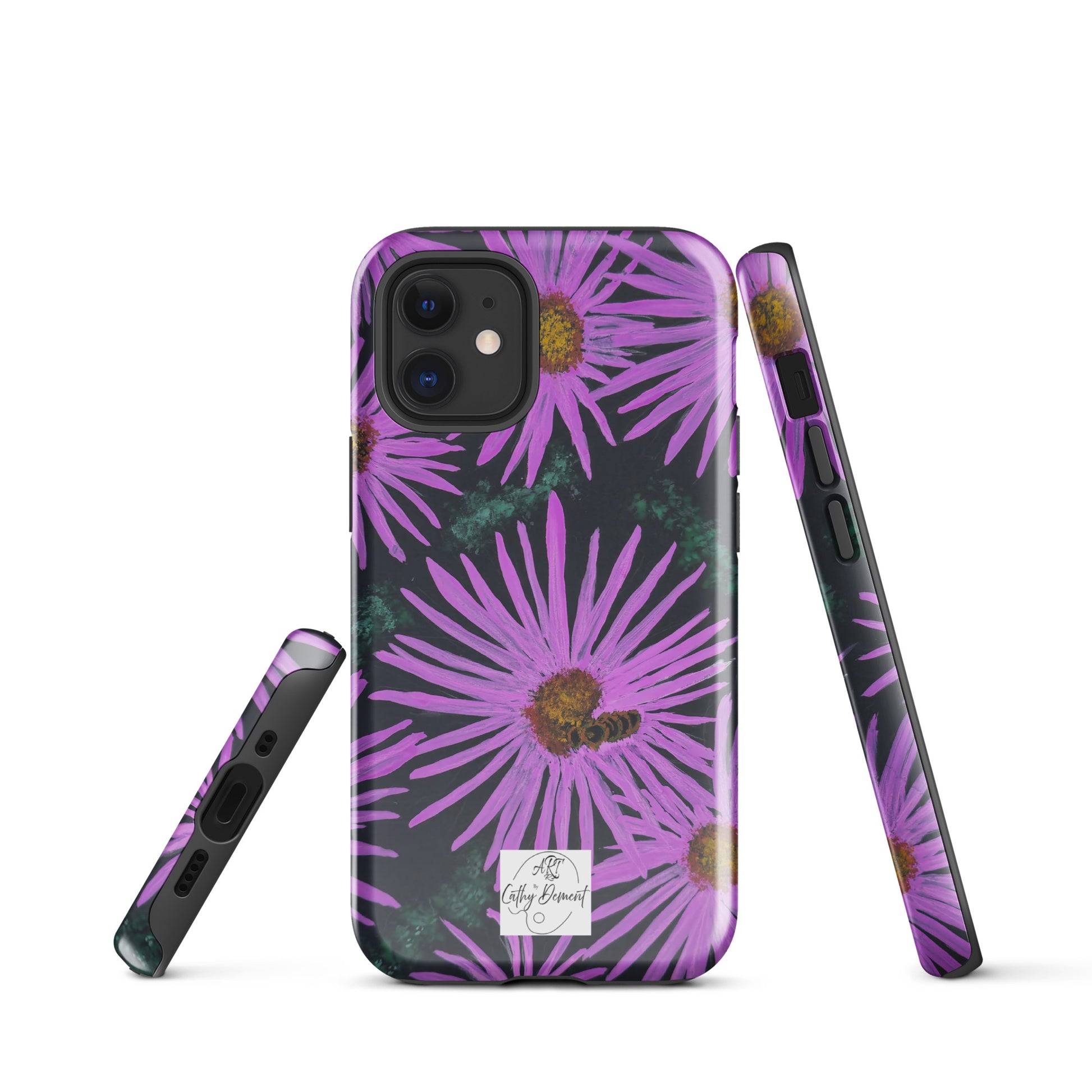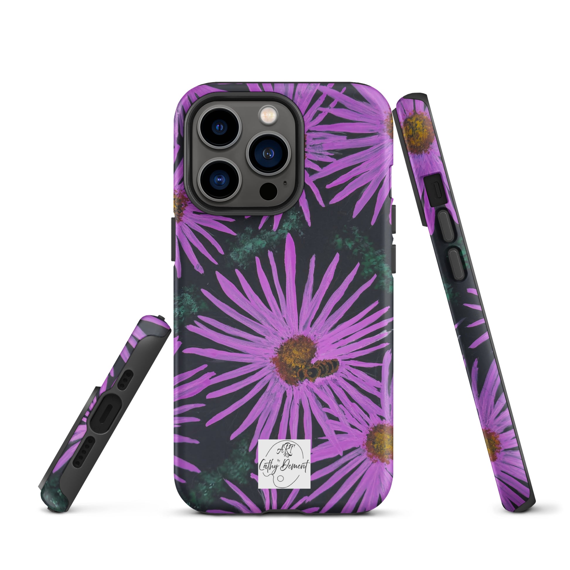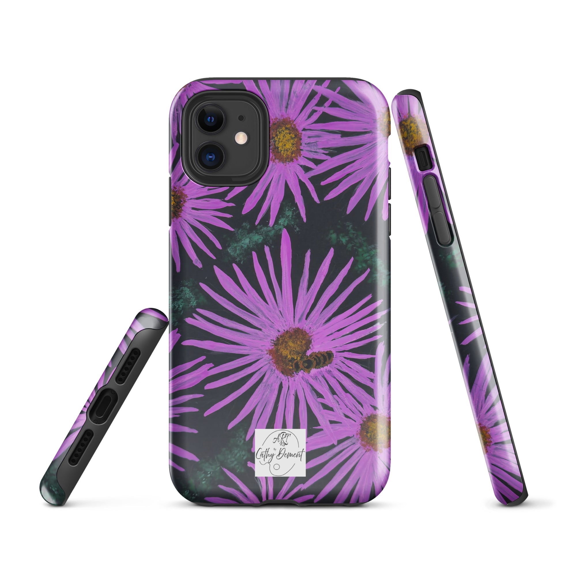 Tough Phone Case for iPhone® - Purple Aster Flowers With Bee Artwork Design