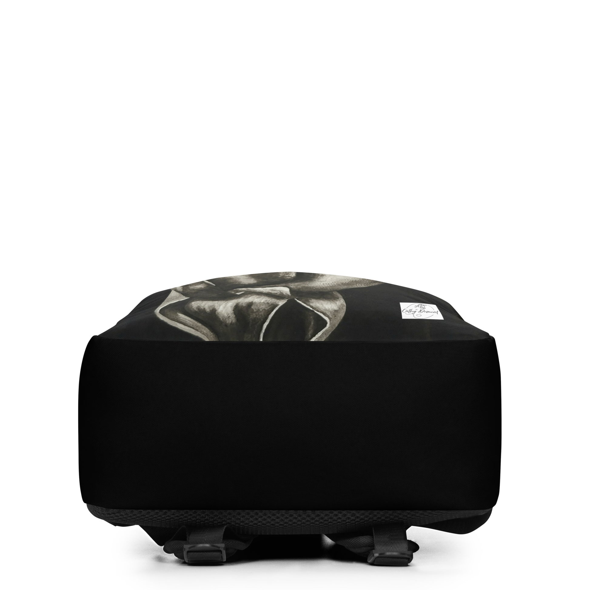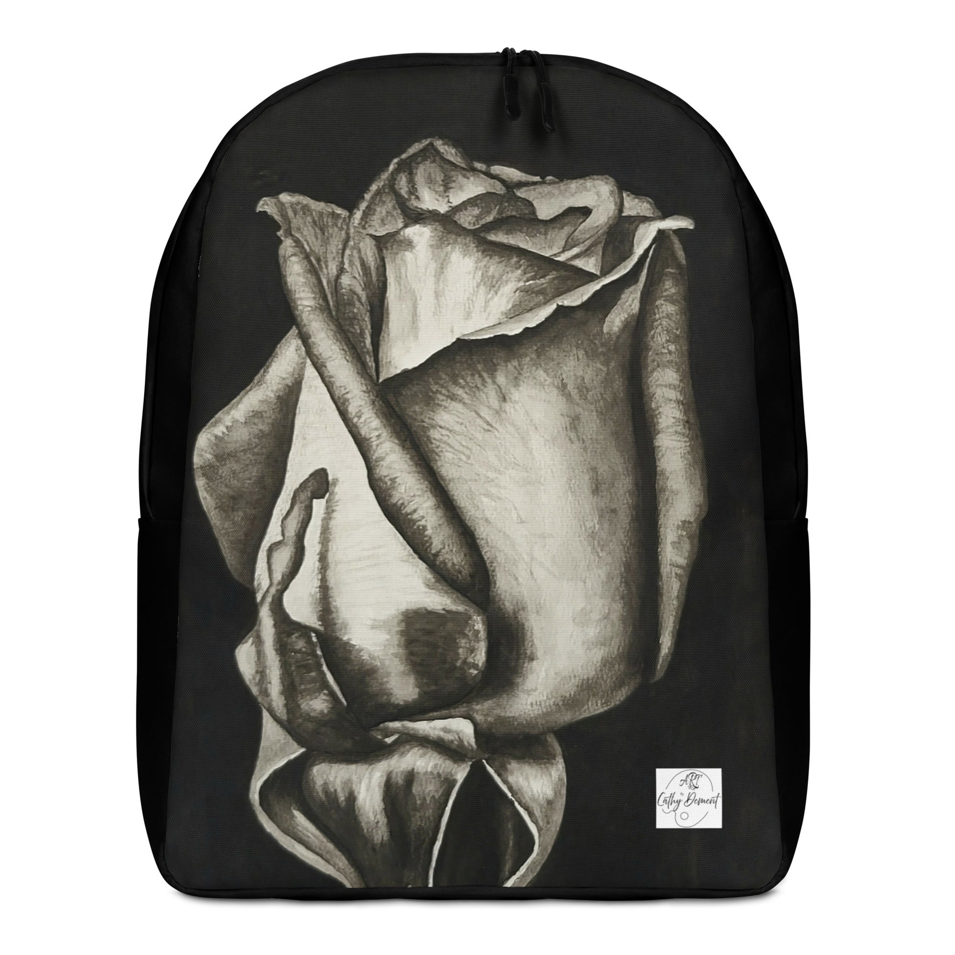 Backpack - Dusk's Embrace: Monochrome Rose Artwork, Black and White Wearable Art Bag