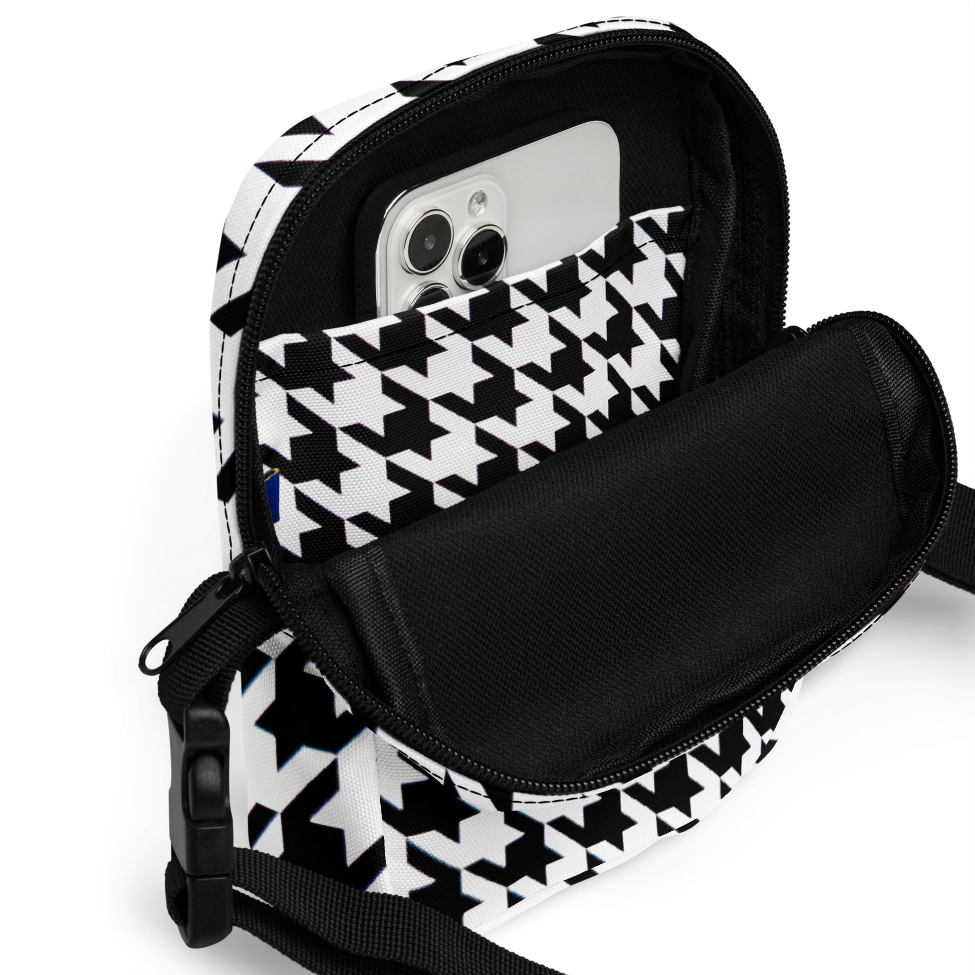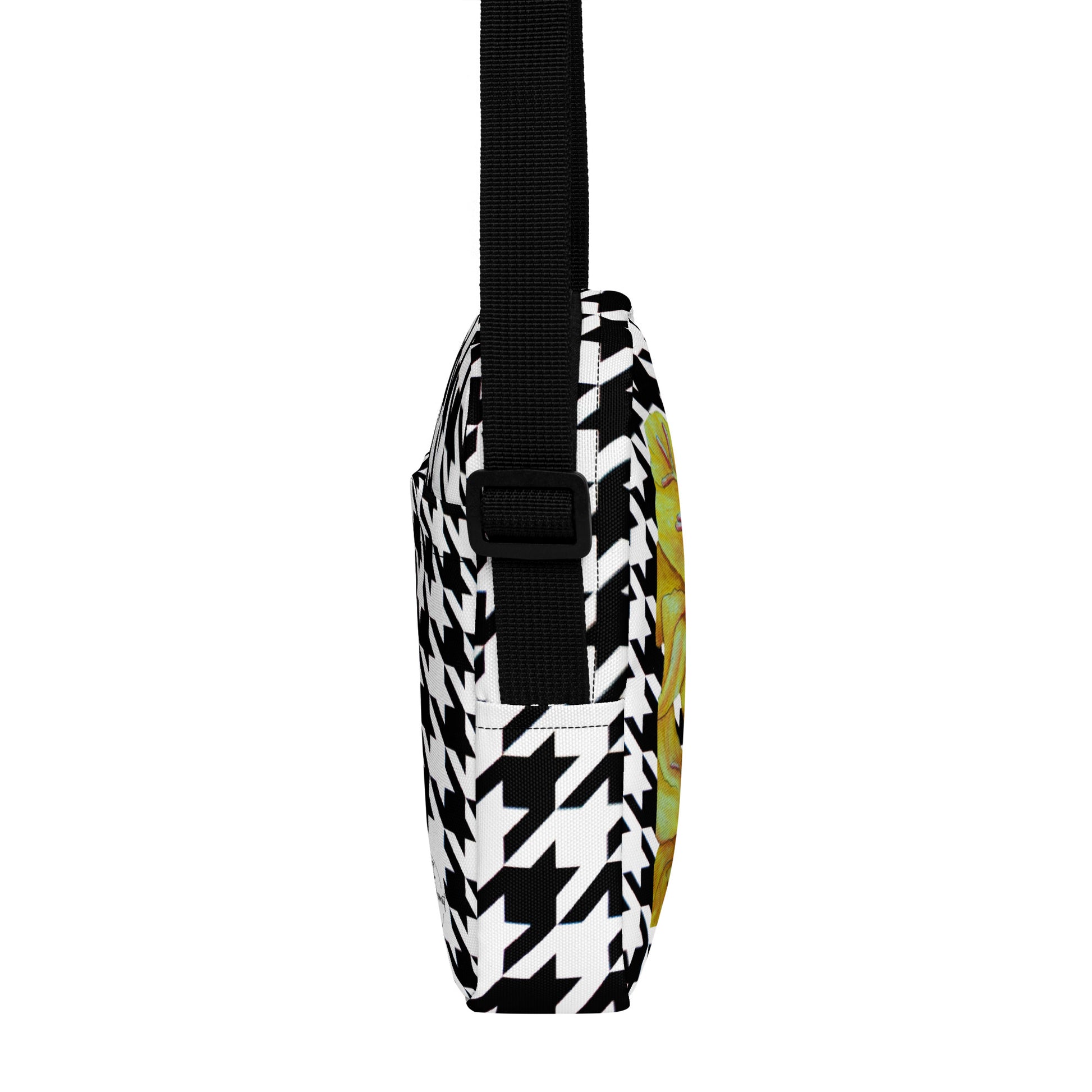 Sunny Blooms: Yellow Hound's Tooth Gladiola Artwork Utility crossbody Bag Details: