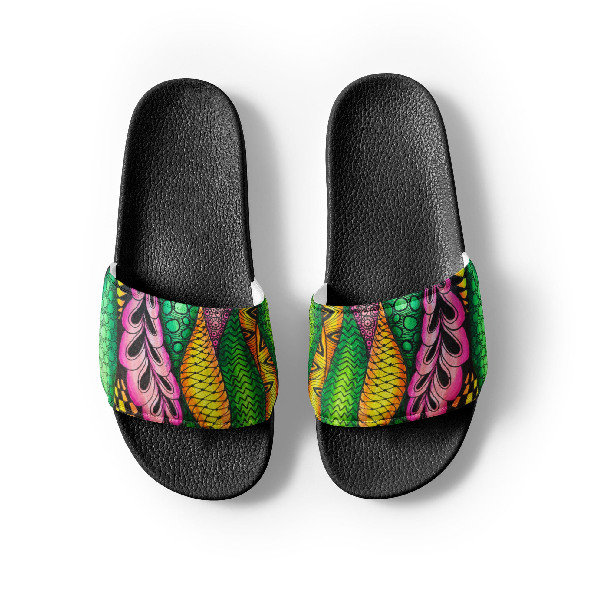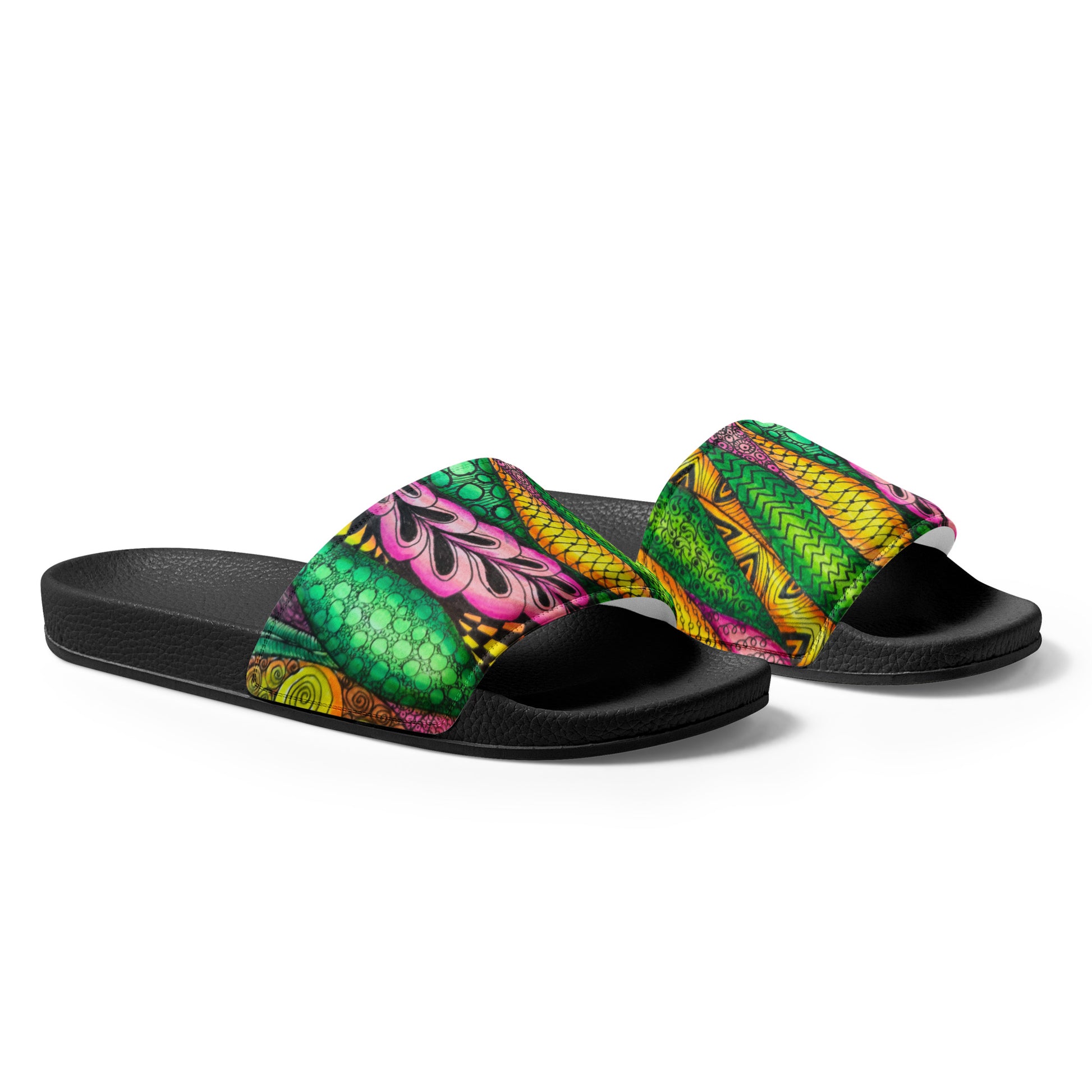 Women's Slides - Zen Bloom - Colorful Zentangle Artwork Design Sandals, Wearable Art Shoes