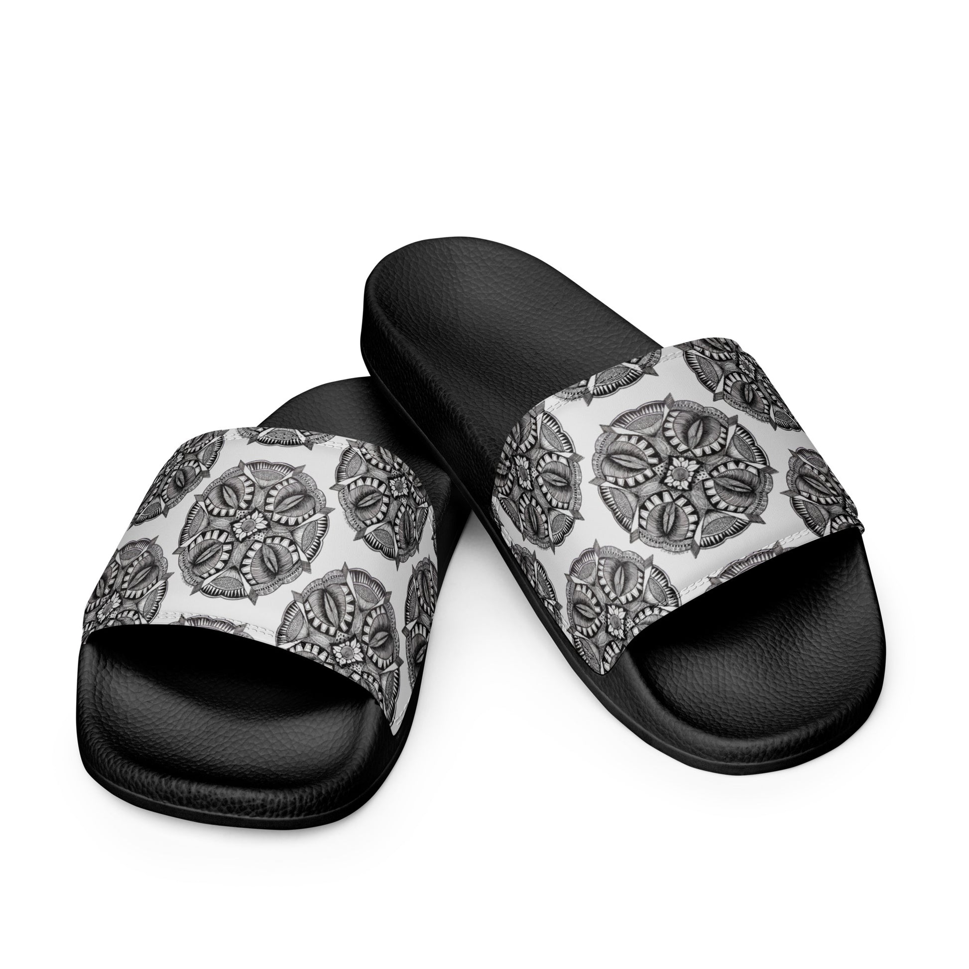 Women's Slides - Zen-Dala - Monochrome Mandala Zentangle Artwork Design Sandals, Wearable Art Shoes